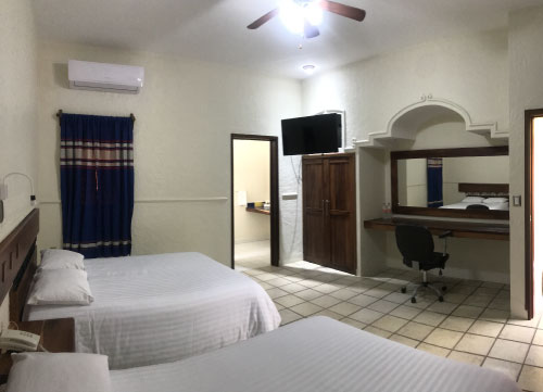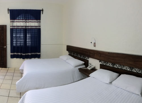 Habitación doble estándar; perfecta para quienes viajan en familia, parejas o grupos. Cuenta con dos camas matrimoniales con un espacio perfecto para tu estancia. Planta alta.